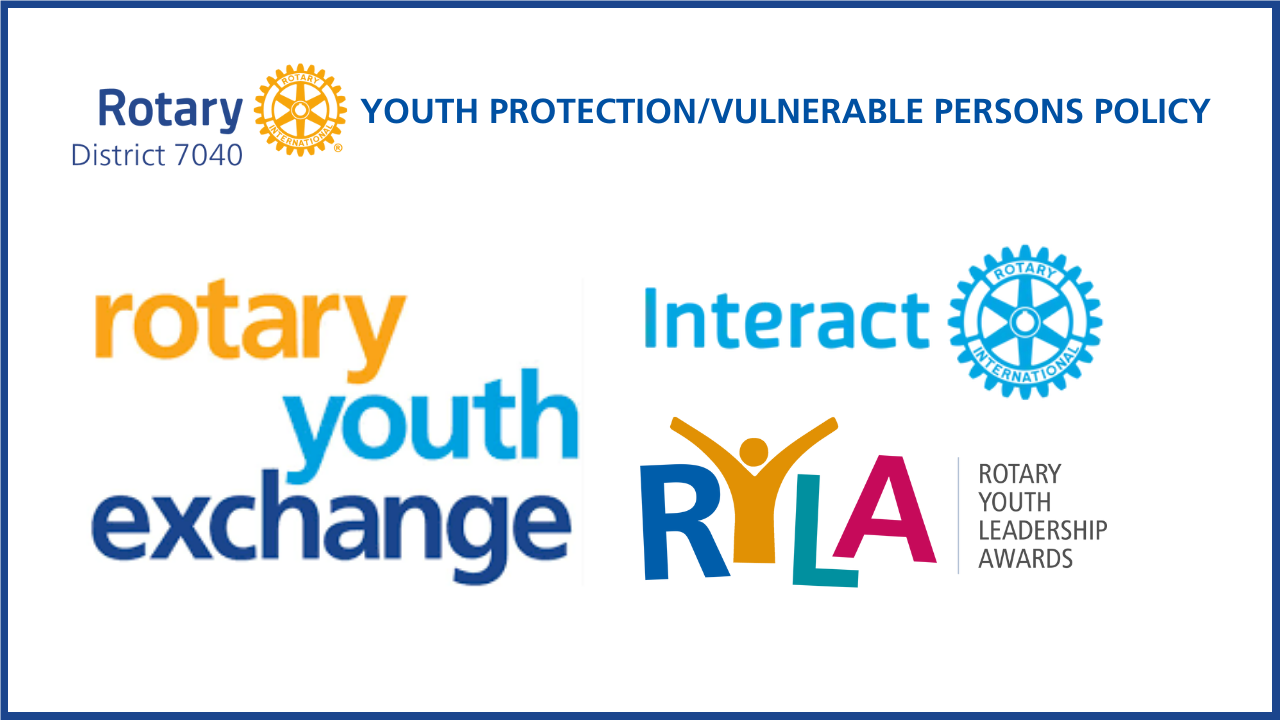 Rotary District 7040 is committed to providing a safe and supportive environment for all youth and vulnerable persons involved in Rotary programs and activities. Our Youth Protection / Vulnerable Persons Policy outlines the standards, expectations, and procedures in place to safeguard participants and volunteers.